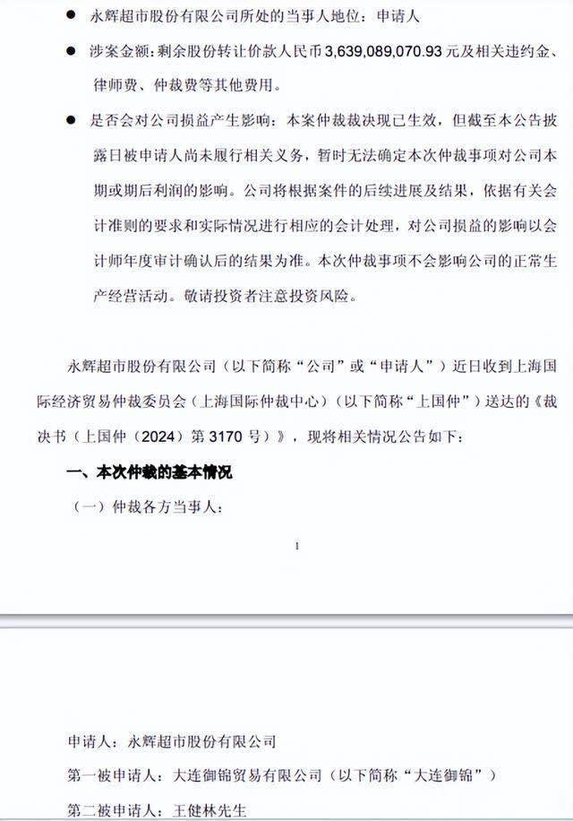 根据4月14日的消息,永辉超市已经收到了一份终局裁决,其之前向法院提出的追款申请,已经获得了支持,涉及金额高达38.57亿。