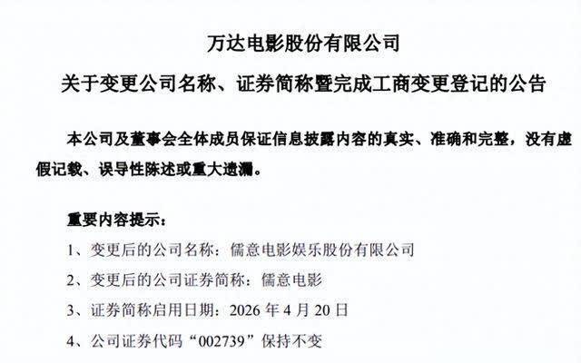 在4月19日的时候,万达电影发布了一则消息,宣称公司名称将会变更为儒意电影。不少网友对此直言:一个时代已经落幕。