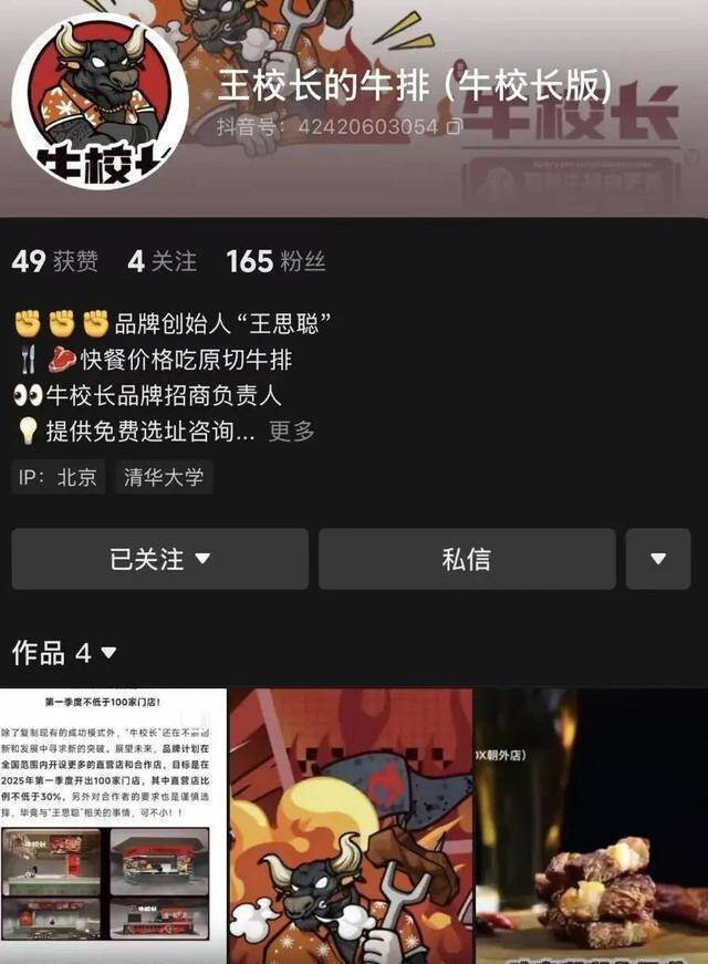 在2024年底的时候,他还投资了一个餐饮品牌“牛校长”,进军牛排快餐行业,更是宣布要在2025年的第一季度,把门店开到百家。